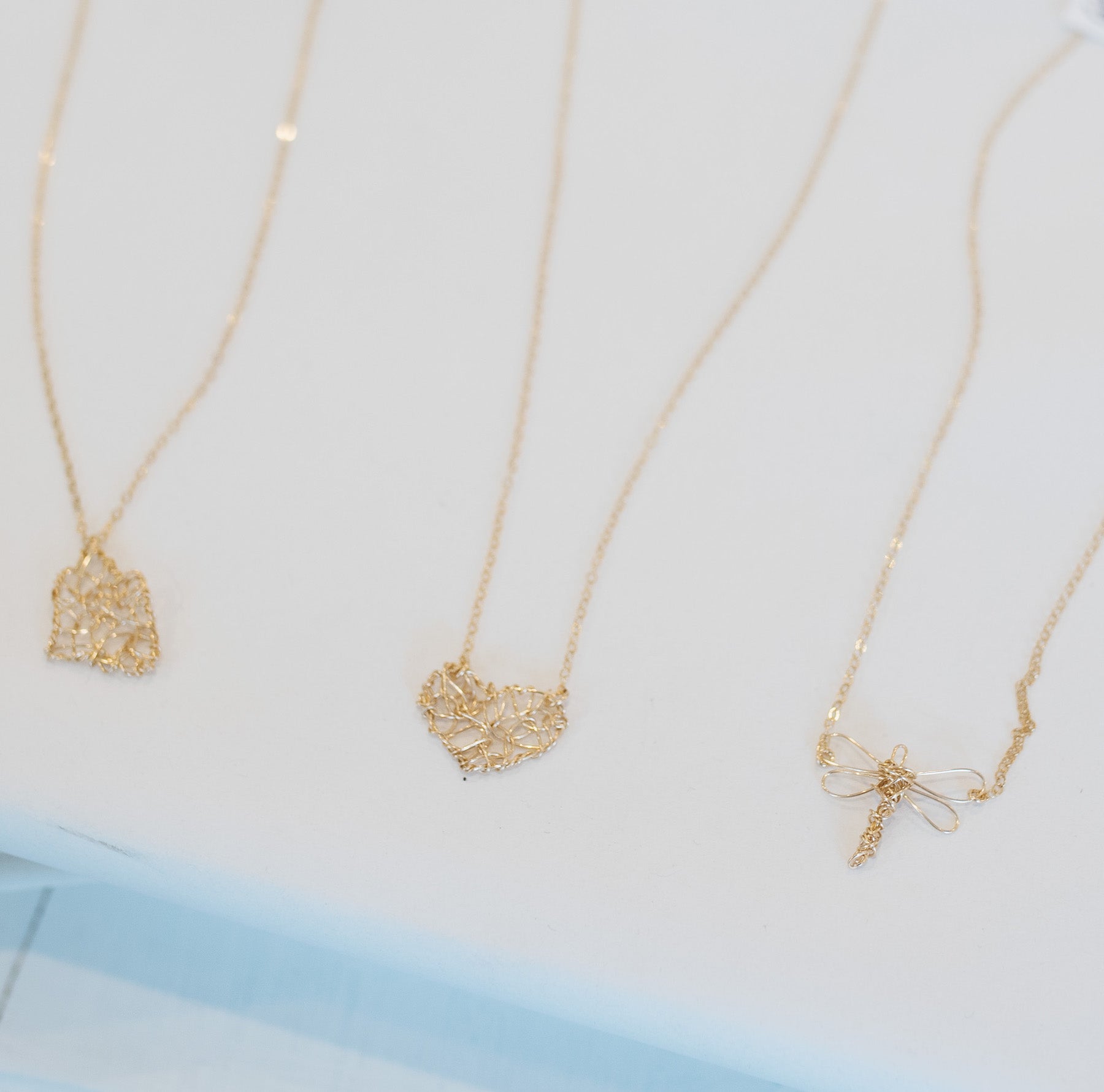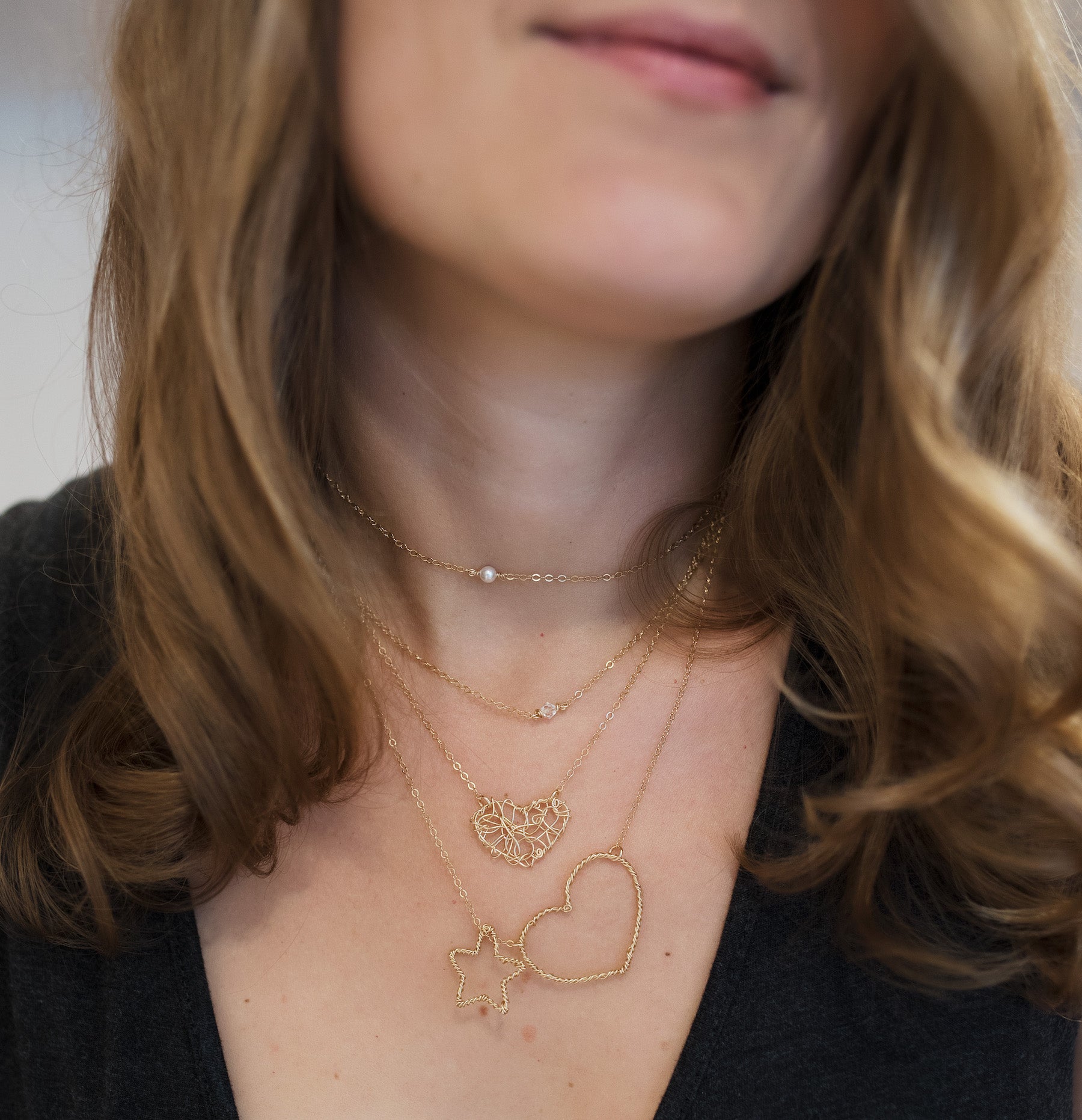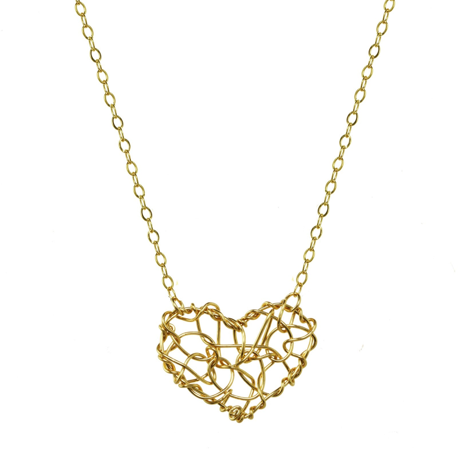 Our human hearts are beautiful, strong, chaotic, messy, and sweet. This delicate gold wire heart necklace is all of those things combined.The heart pendant measures under 1 inch wide and connects securely on each side to a 16" inch chain with a 2" inch extender.This necklace has a very special meaning to me personally, read the story here.