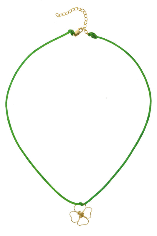 Gold on Green four leaf clover necklace