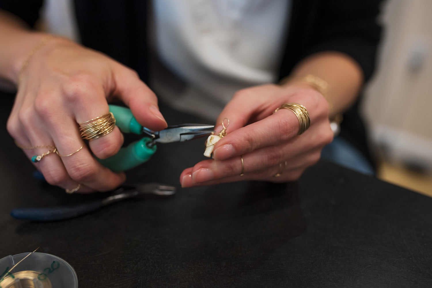 Delicate gold wire with pearls that dress up any outfit.
